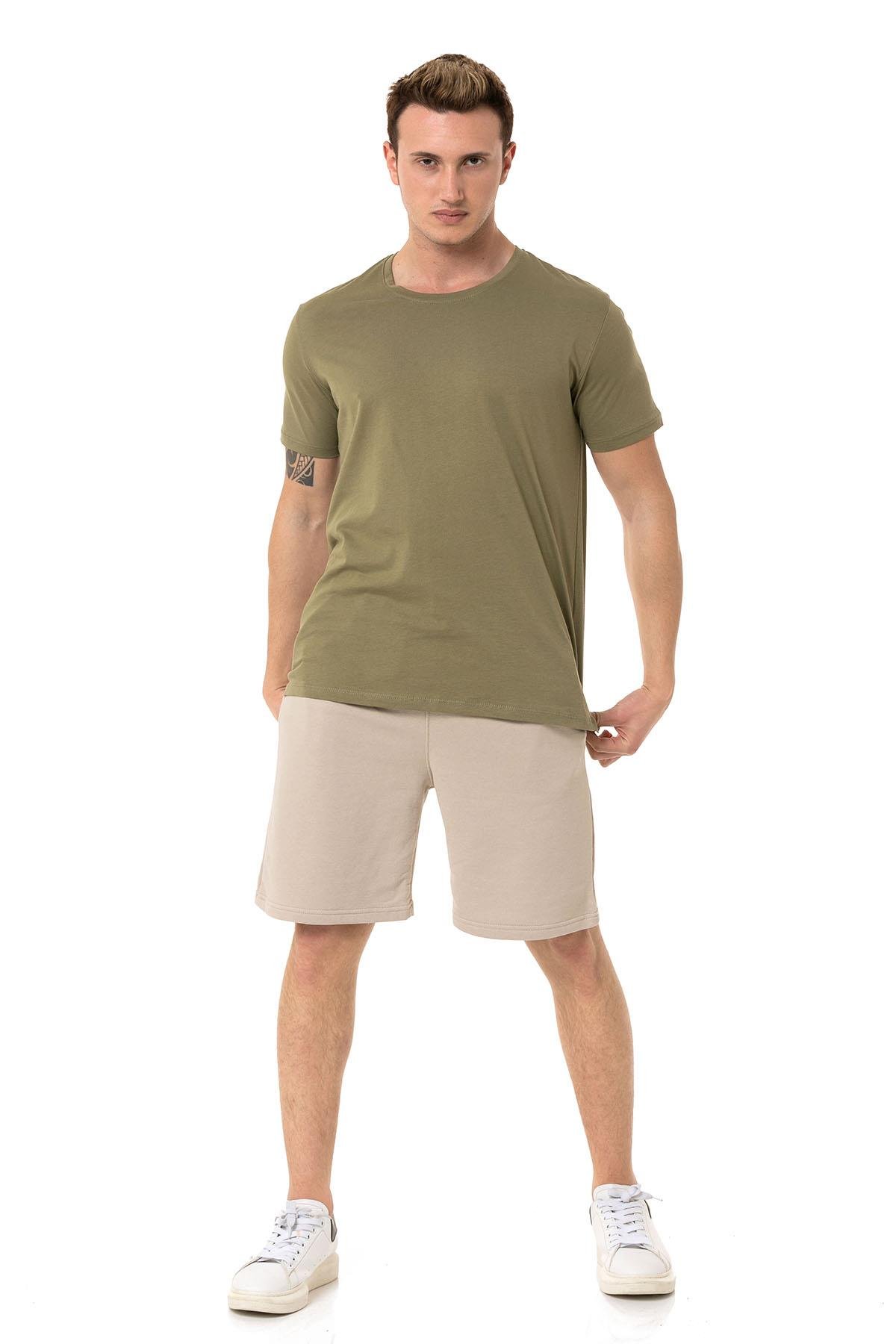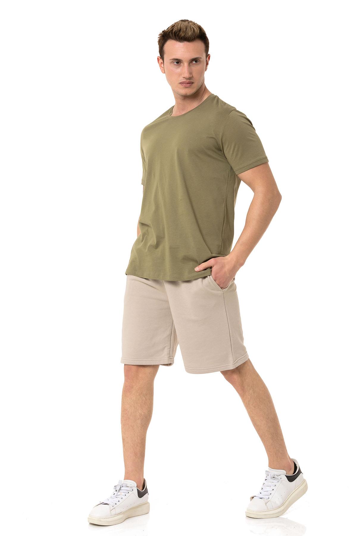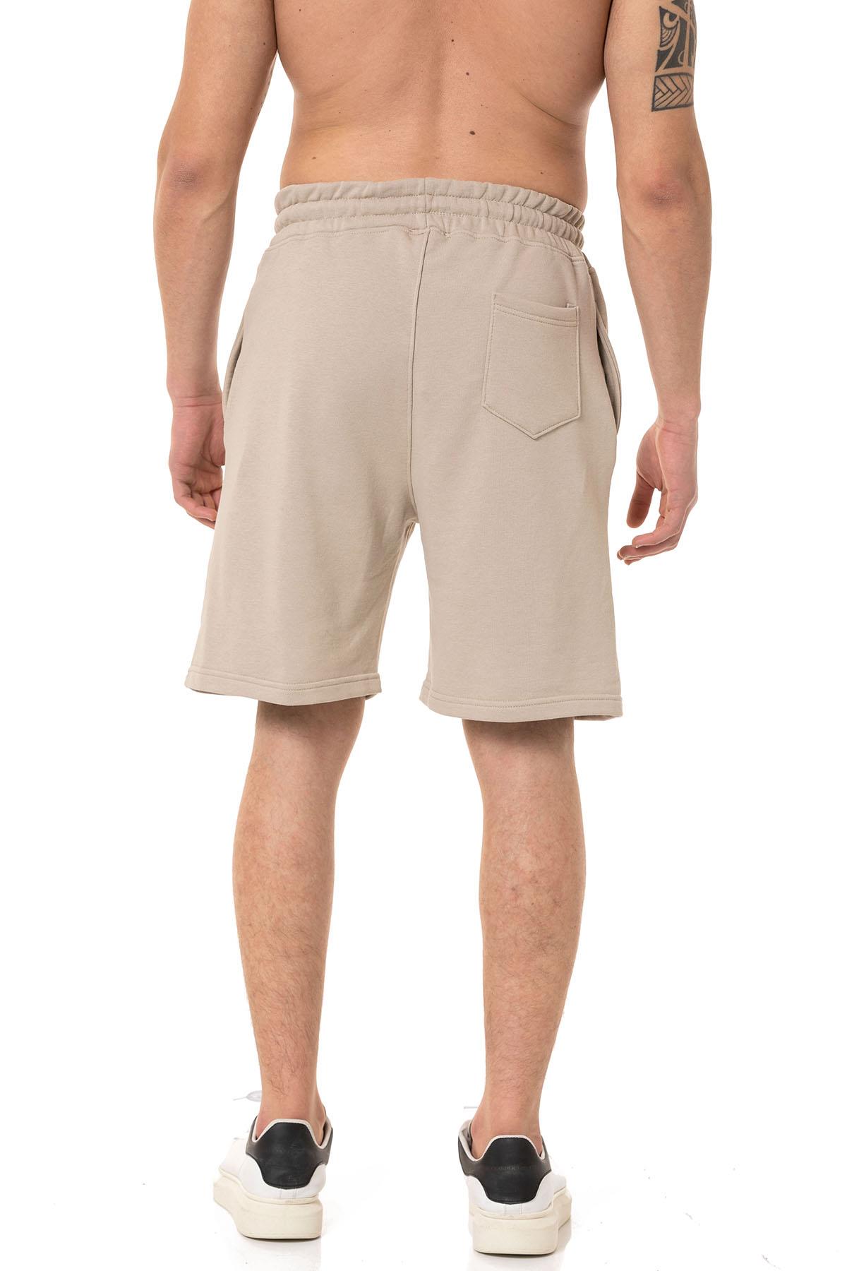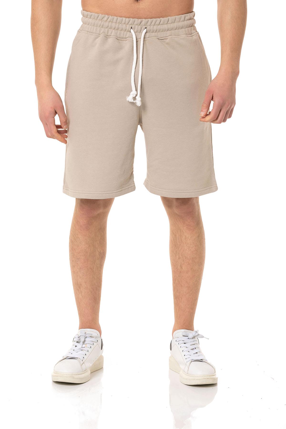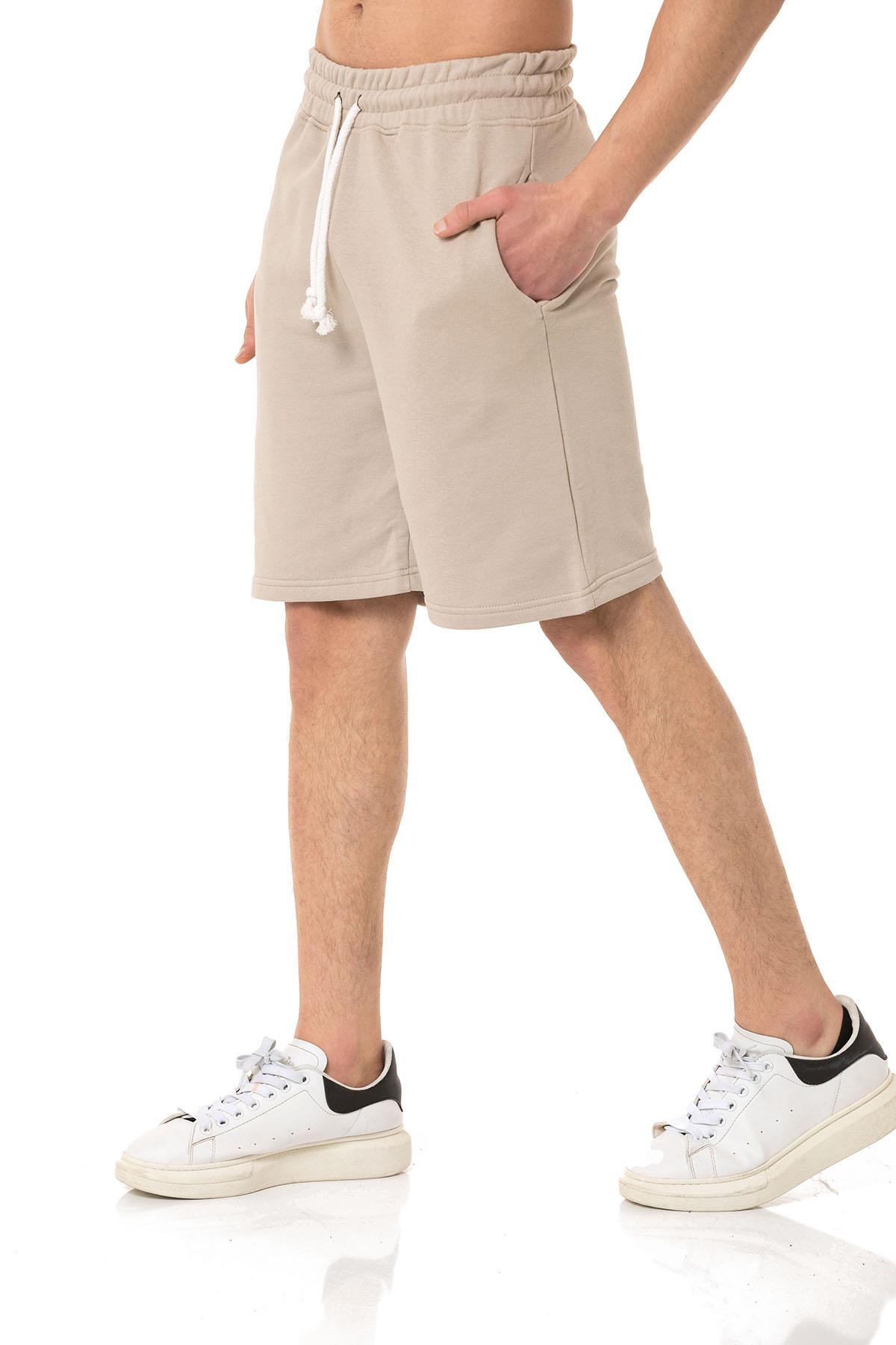Rahat kesimi ile günlük kullanım için ideal, bej renkteki 2 iplik örme kumaştan üretilmiş erkek şort.