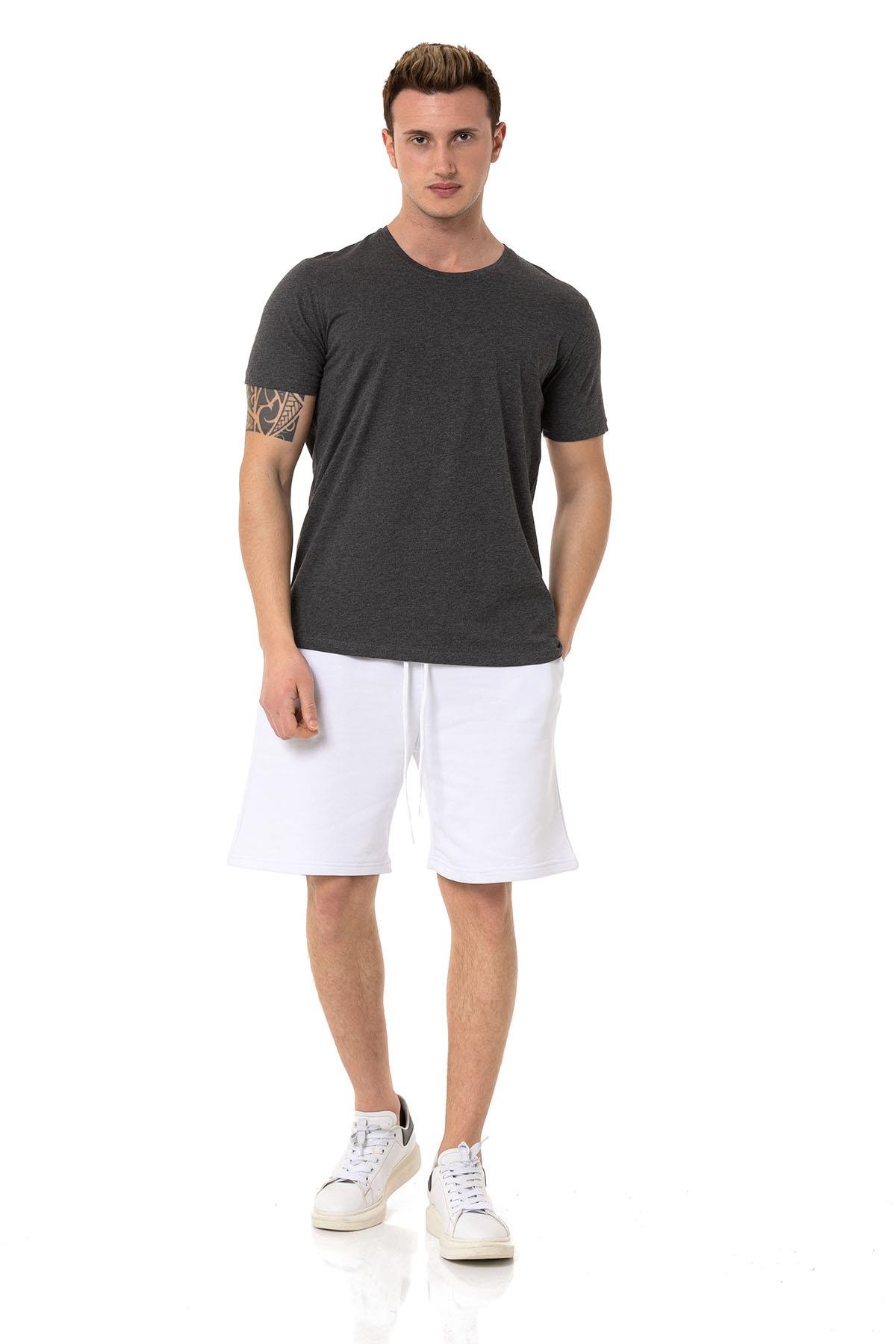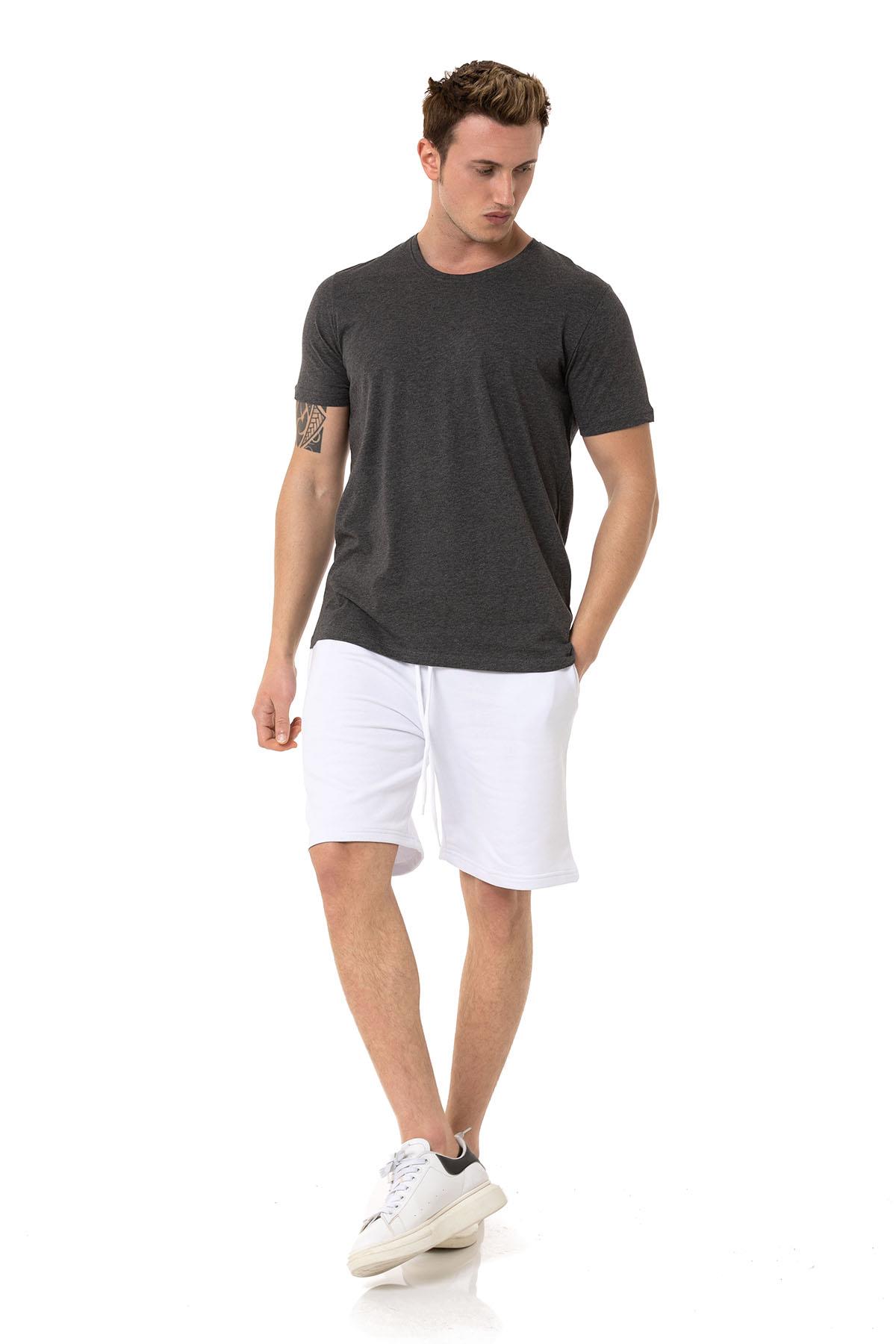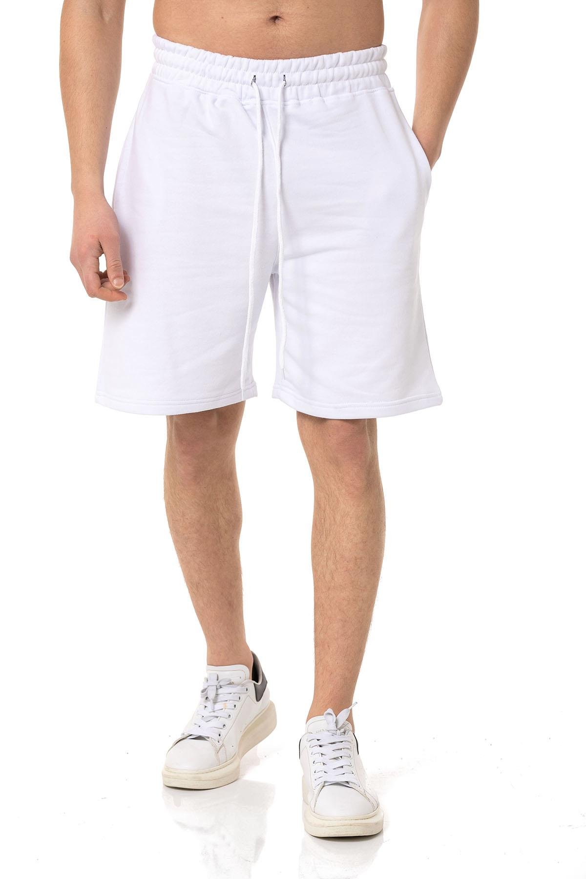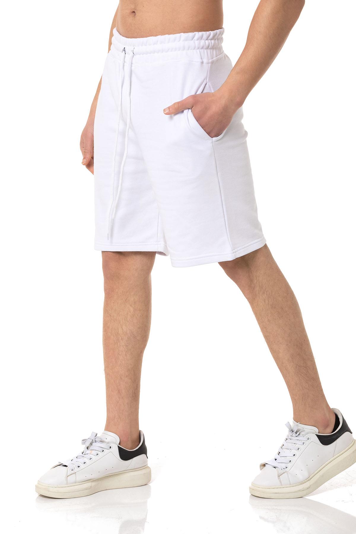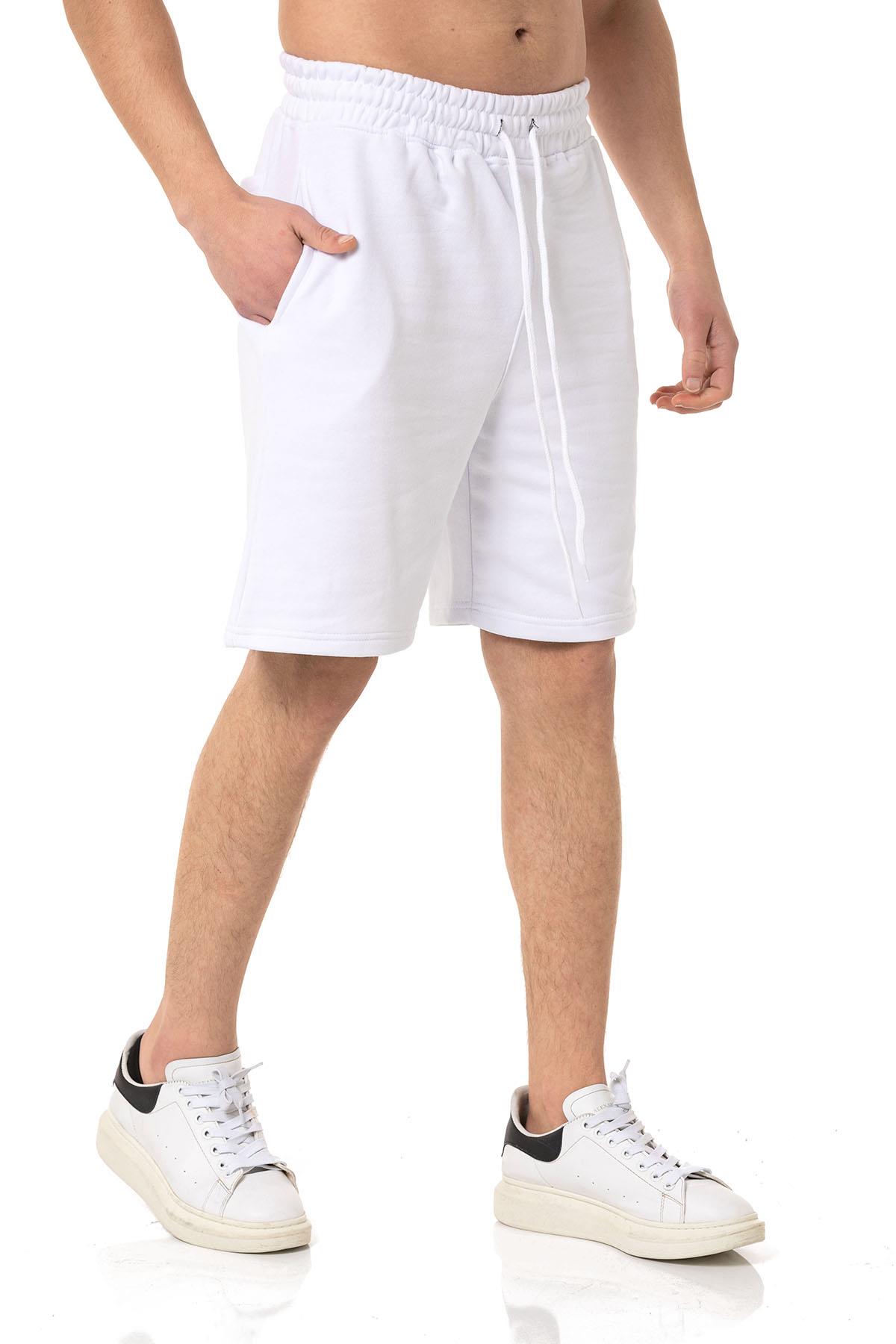 Rahat kesimi ile günlük kullanım için ideal, beyaz renkteki 2 iplik örme kumaştan üretilmiş erkek şort.
