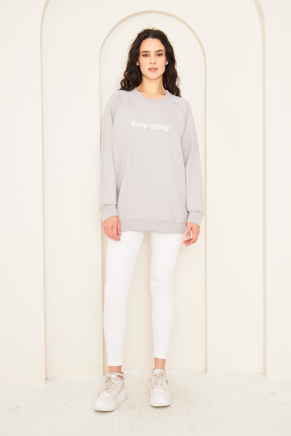 Camenta Gri Keep Going Baskılı Oversize Kadın Sweatshirt
