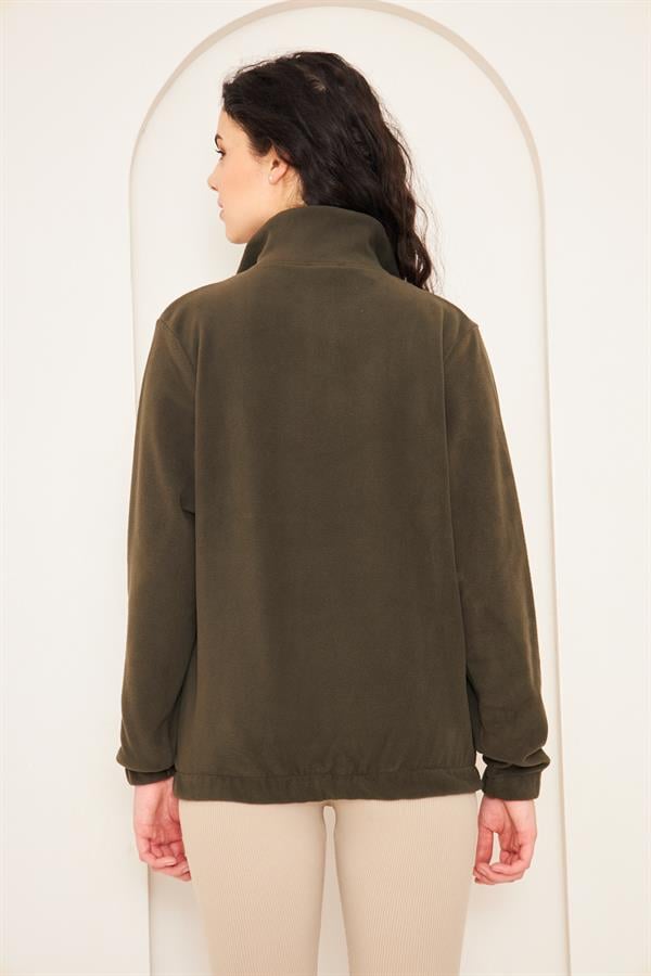 Camenta Haki Kadın Kanguru Cepli Polar Sweatshirt