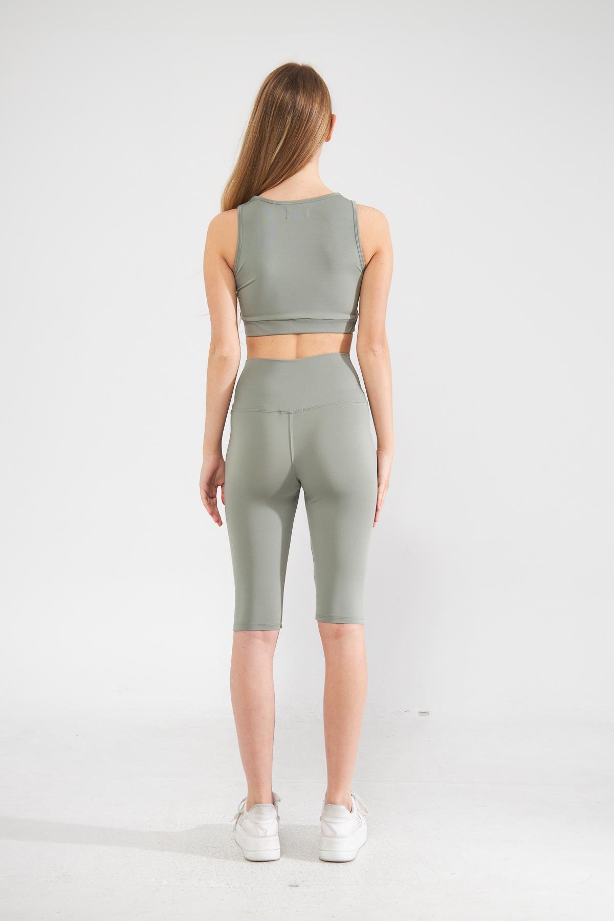 Camenta Haki Yumuşak Tuşeli Yüksek Bel Diz Üstü Kadın Spor Tayt (CMNT24K0033)