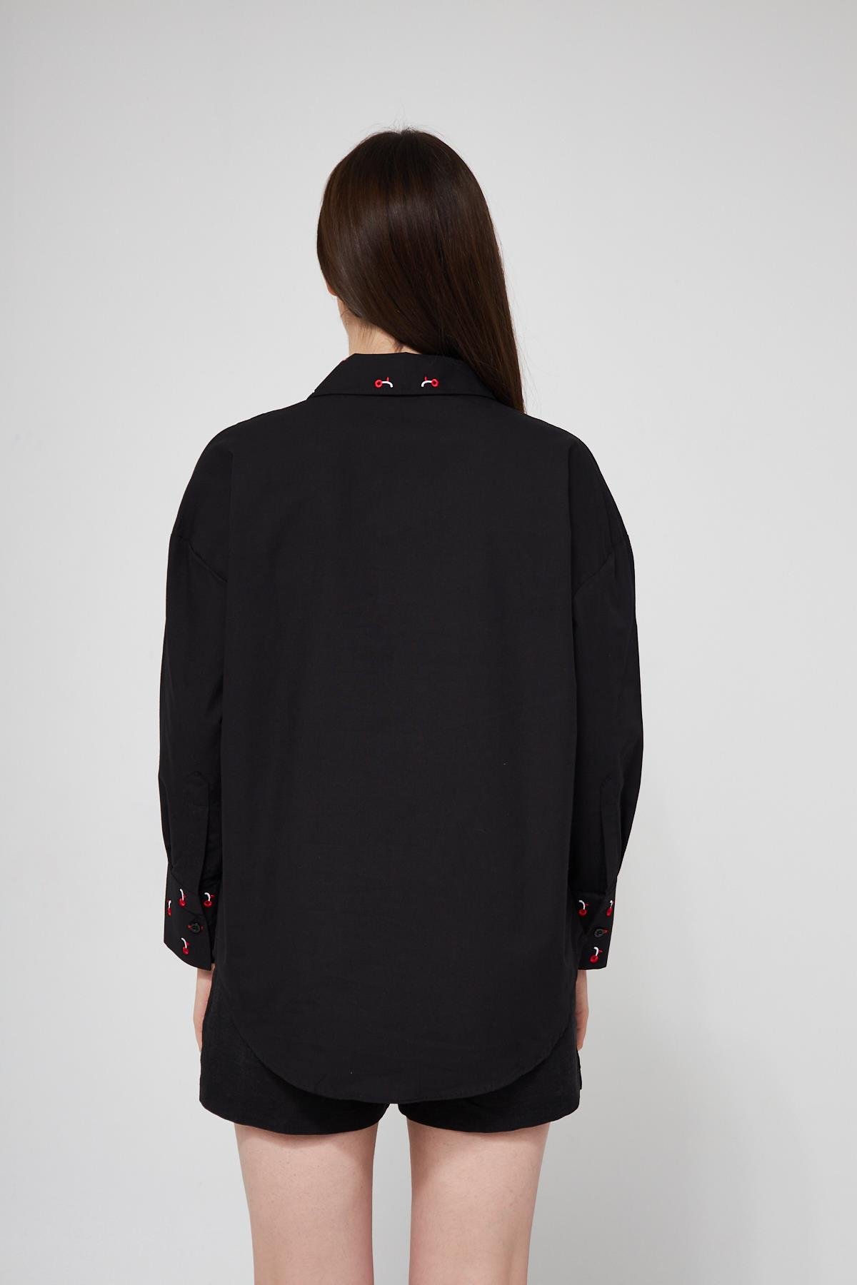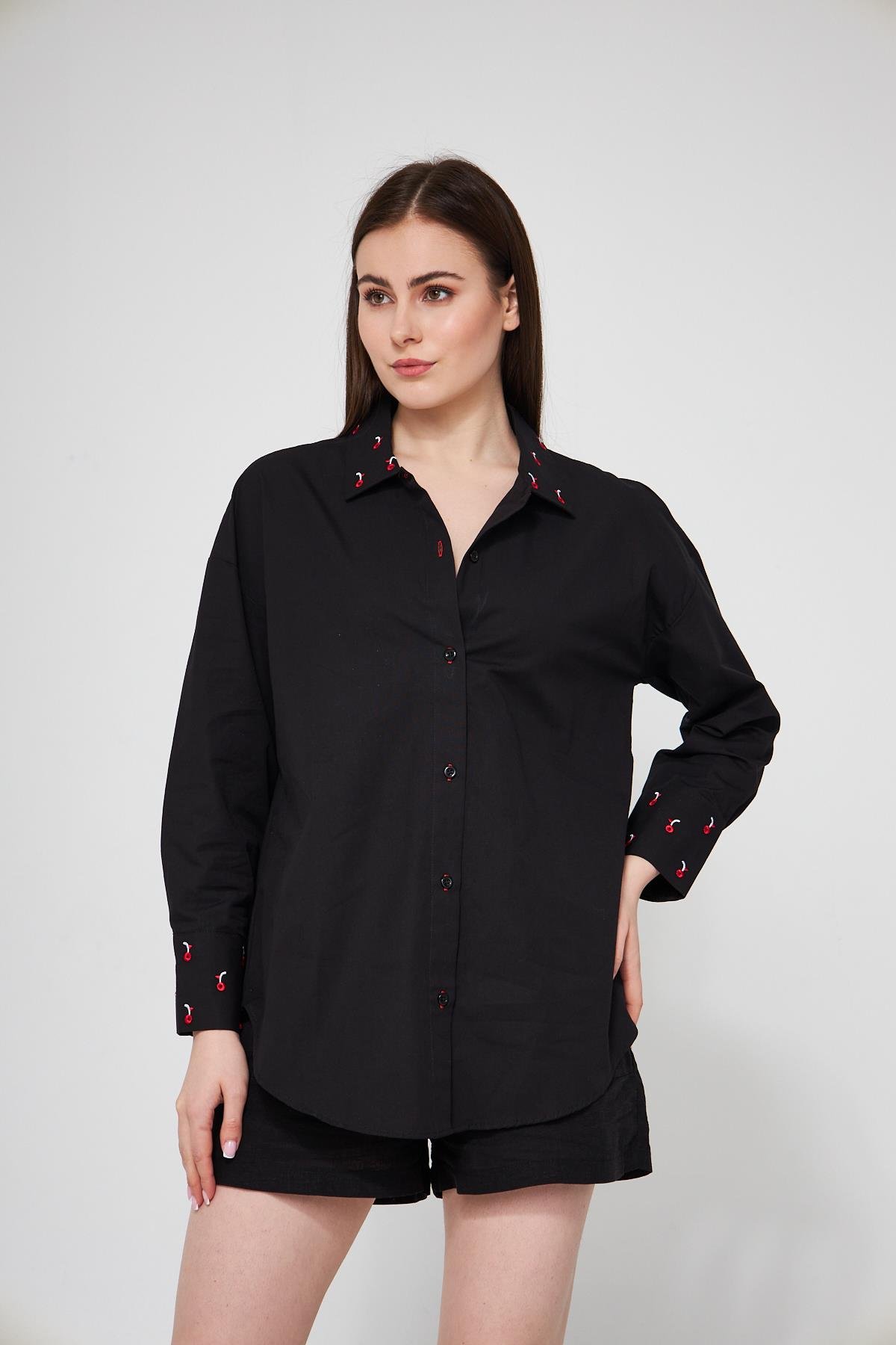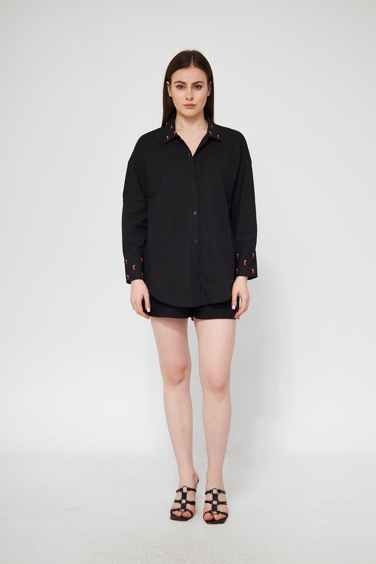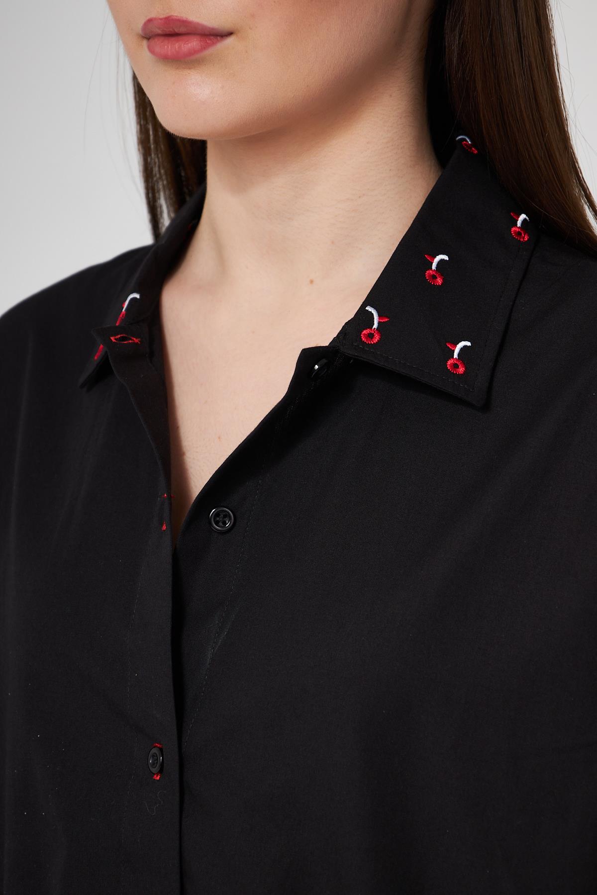 Camenta Nakış Detaylı Siyah Poplin Gömlek