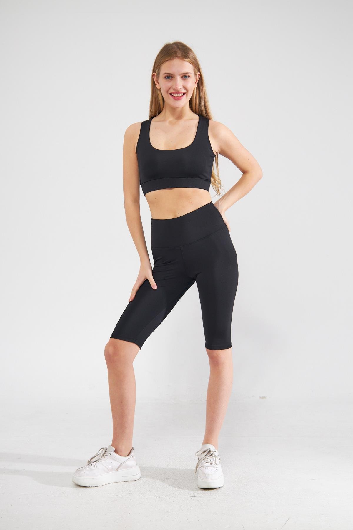 Camenta Siyah Scuba Crop Tayt Alt-Üst Takım